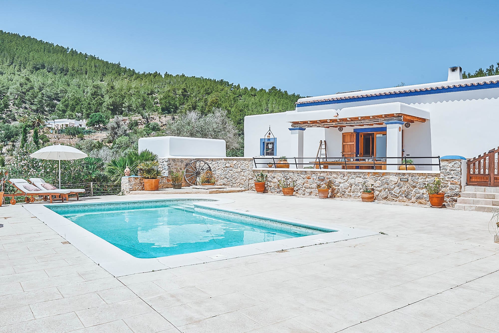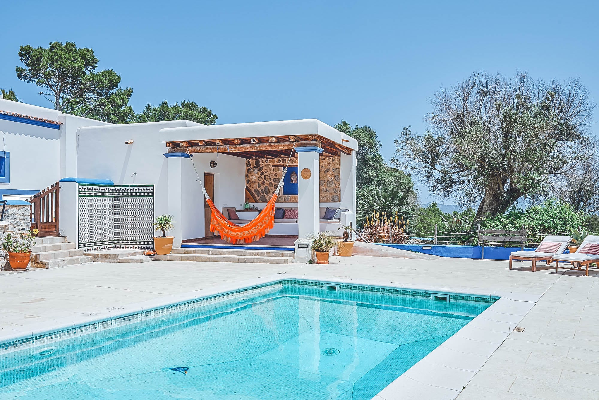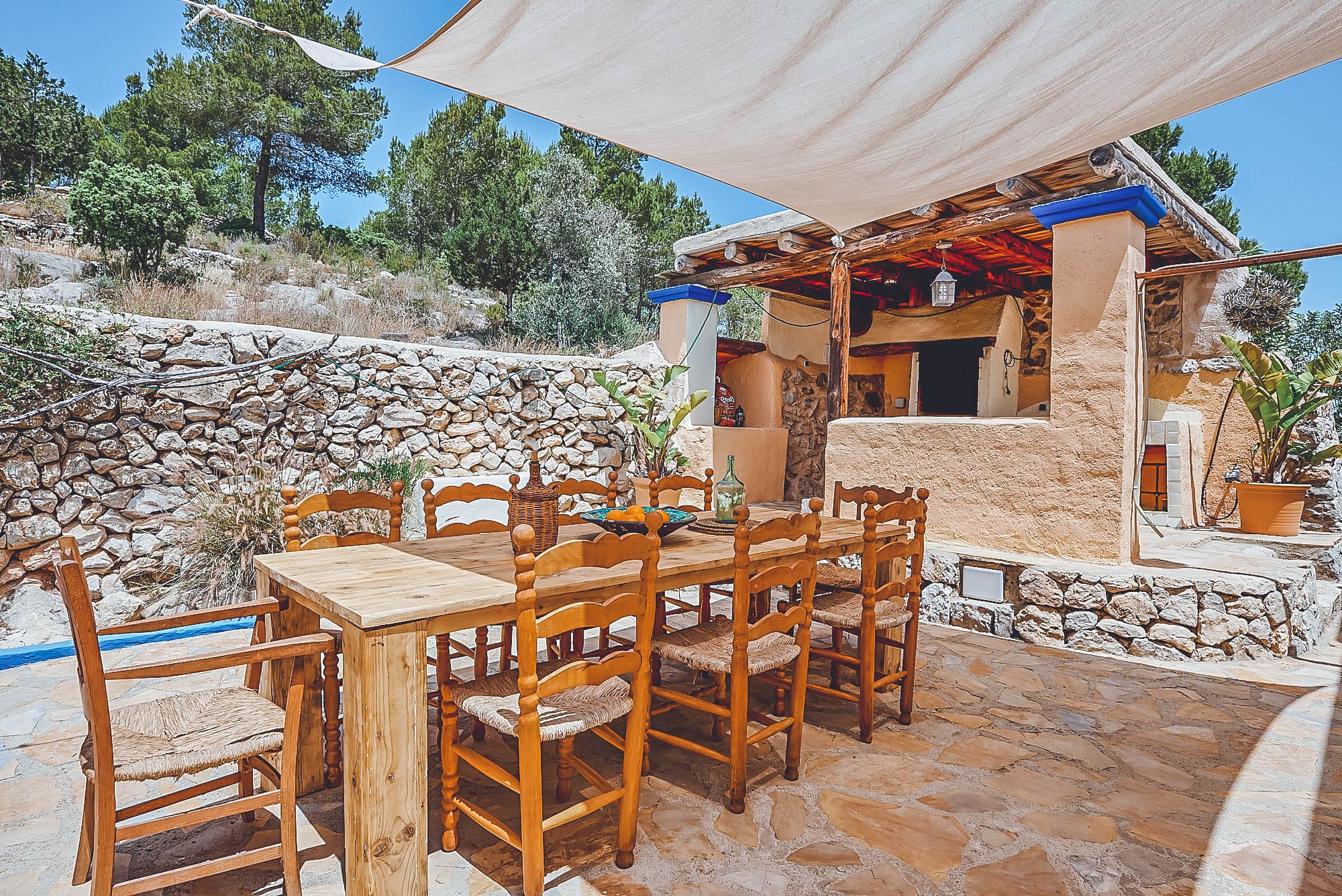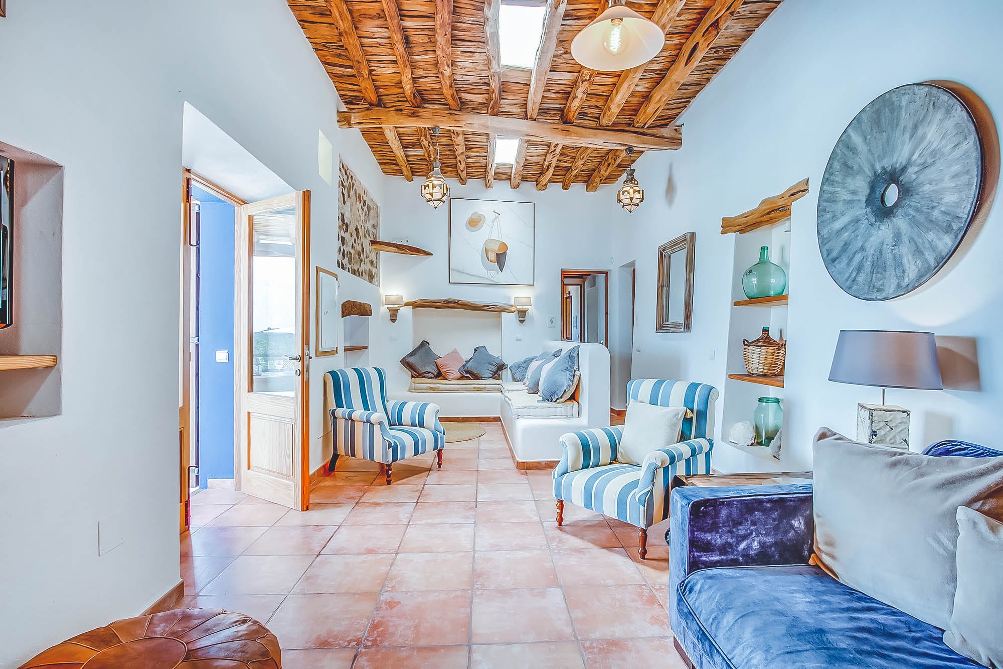 This newly renovated finca has been lovingly restored to retain its natural, authentic style, whilst offering guests all the modern day comforts you could require, and has its own particular elegant bohemian style. The villa offers spacious living spaces throughout for all to enjoy, all decorated with exceptional taste and attention to detail, with eclectic touches throughout. The main house consists of two large double bedrooms plus a large twin bedroom, all of which are complete with en-suite bathrooms and a separate self-contained apartment with a bathroom & kitchenette. This house has also been adapted with access to suit those with disabilities or wheelchair users.