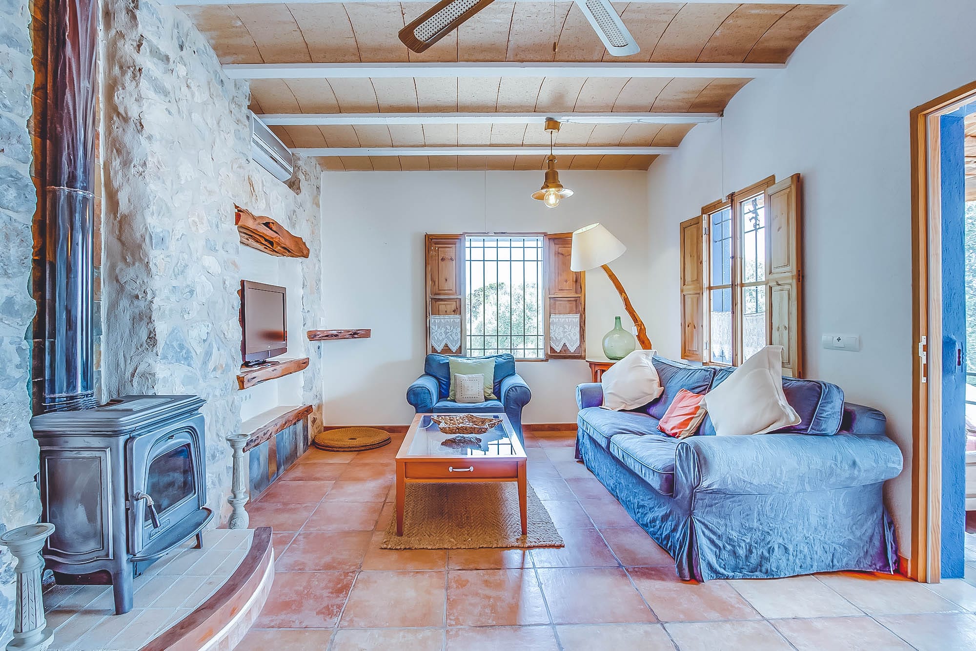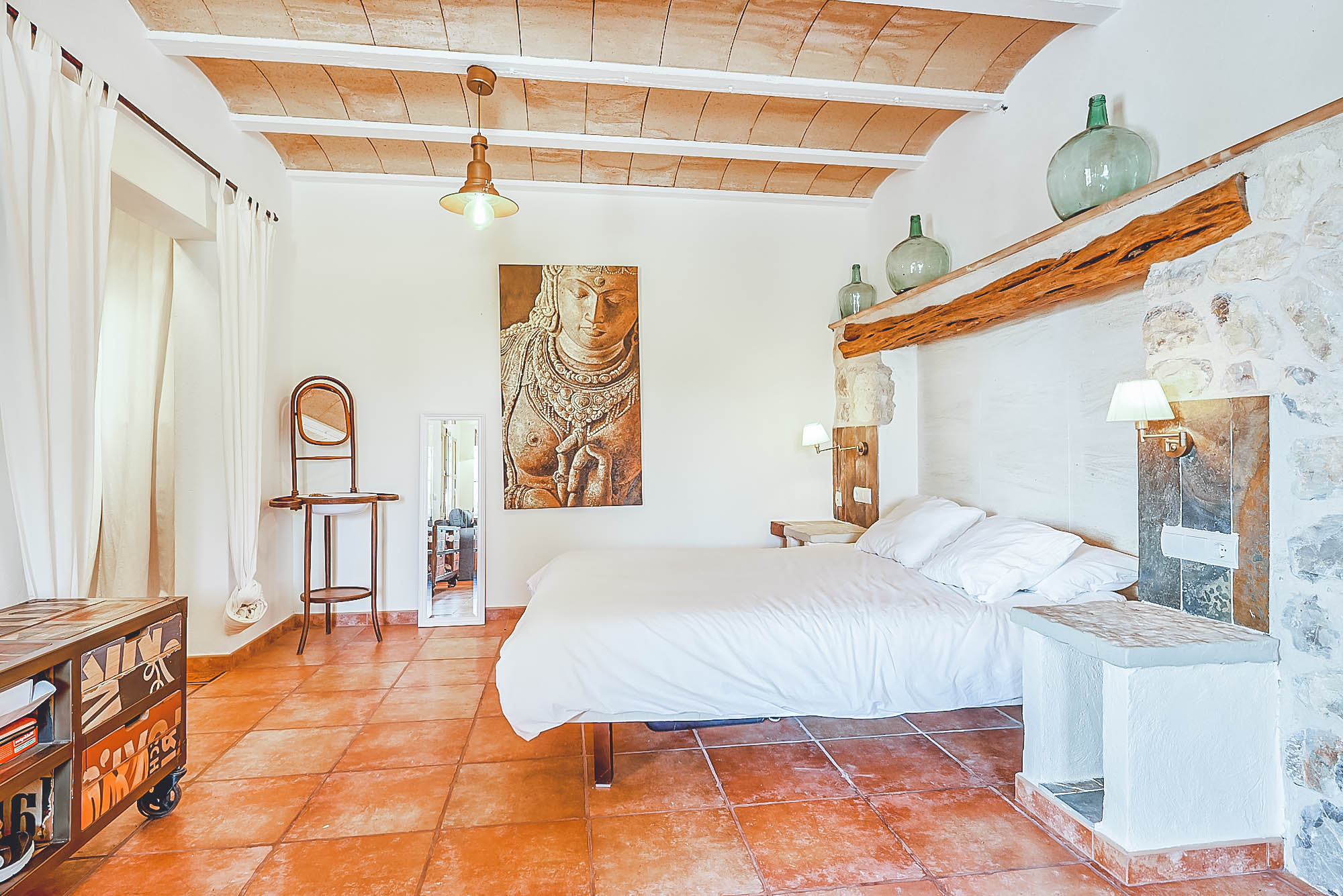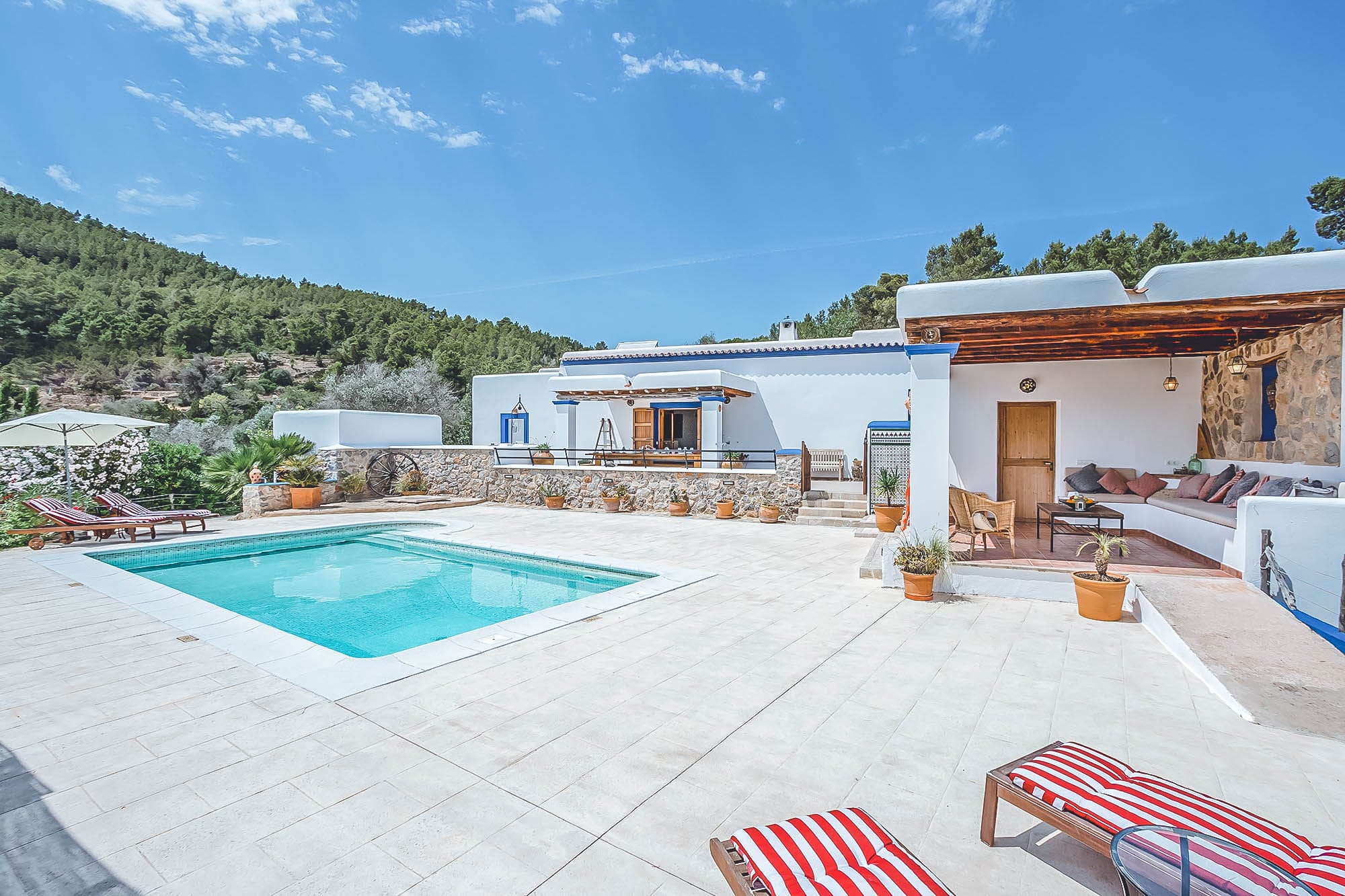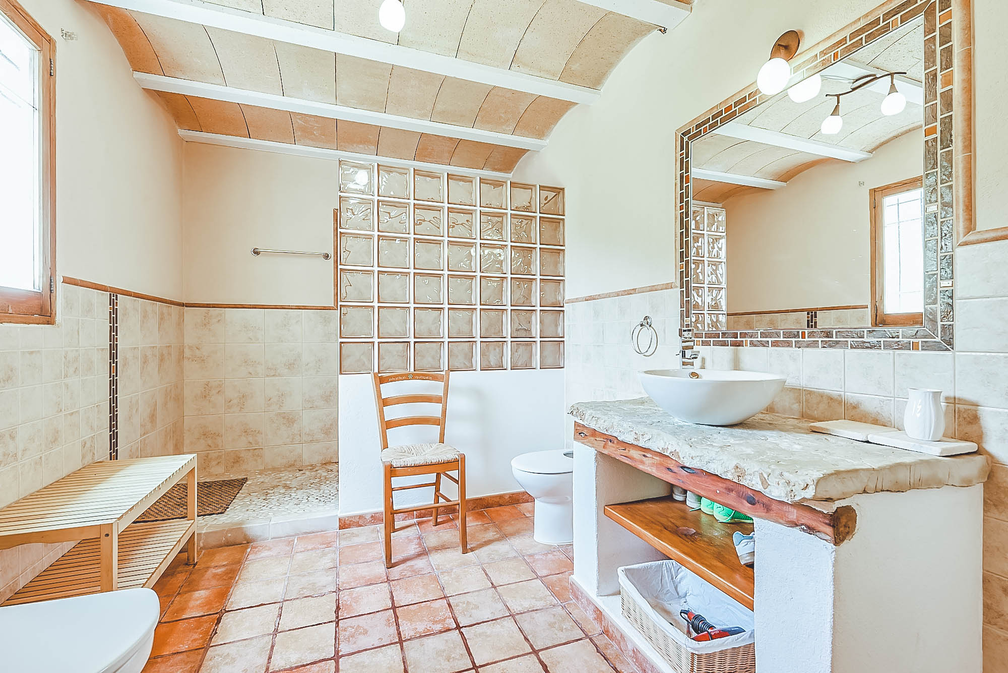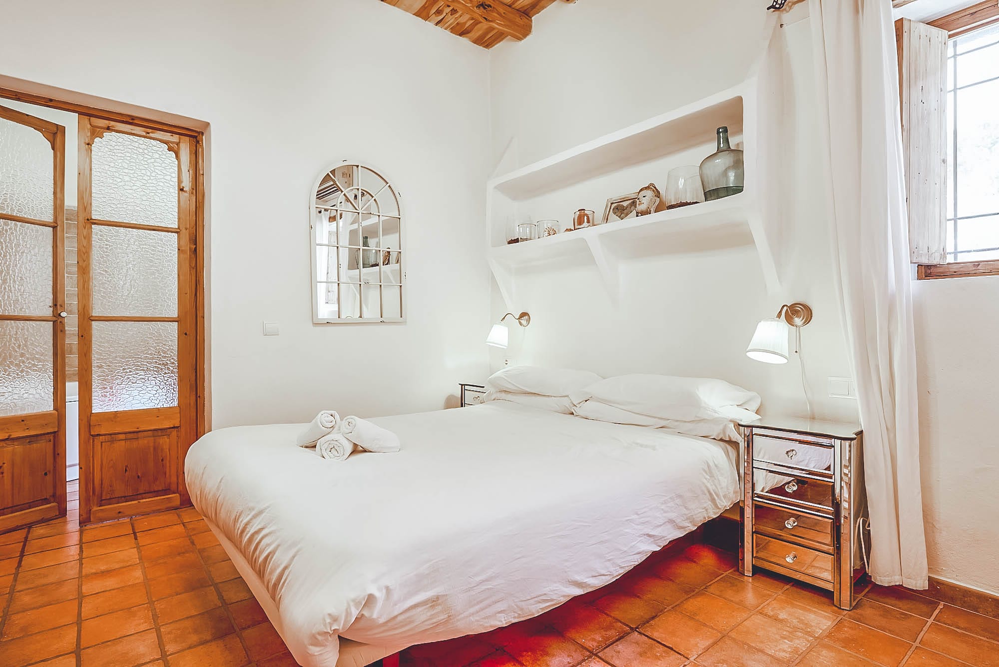 This newly renovated finca has been lovingly restored to retain its natural, authentic style, whilst offering guests all the modern day comforts you could require, and has its own particular elegant bohemian style. The villa offers spacious living spaces throughout for all to enjoy, all decorated with exceptional taste and attention to detail, with eclectic touches throughout. The main house consists of two large double bedrooms plus a large twin bedroom, all of which are complete with en-suite bathrooms and a separate self-contained apartment with a bathroom & kitchenette. This house has also been adapted with access to suit those with disabilities or wheelchair users.
