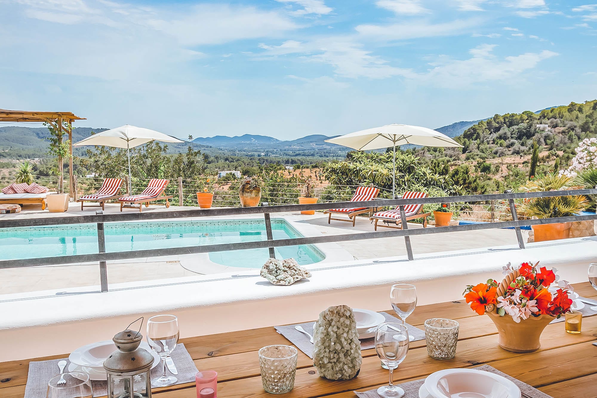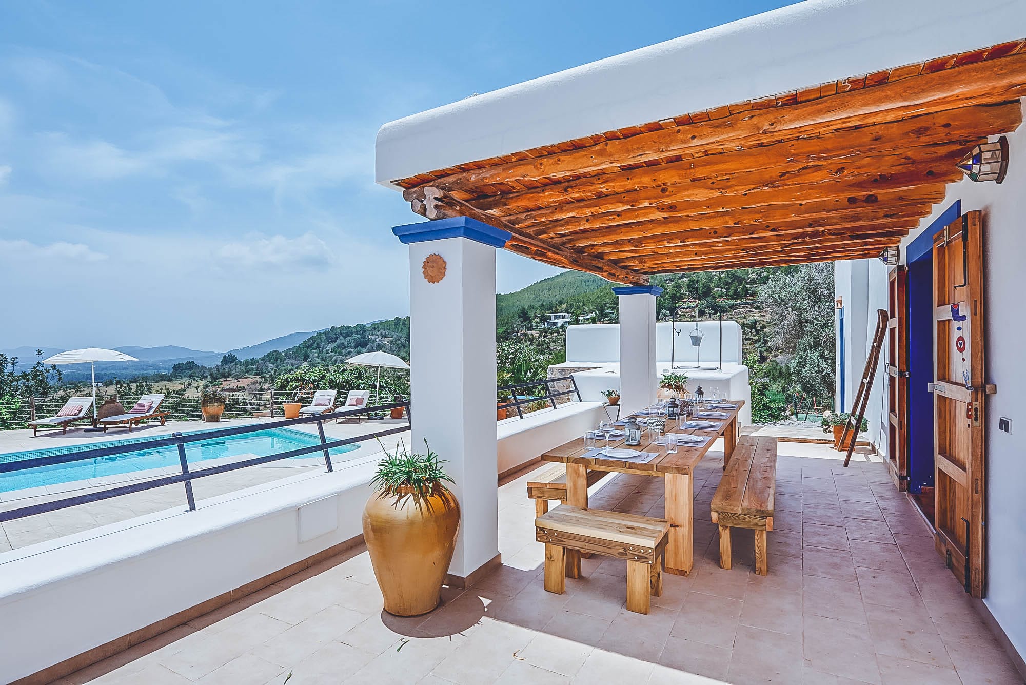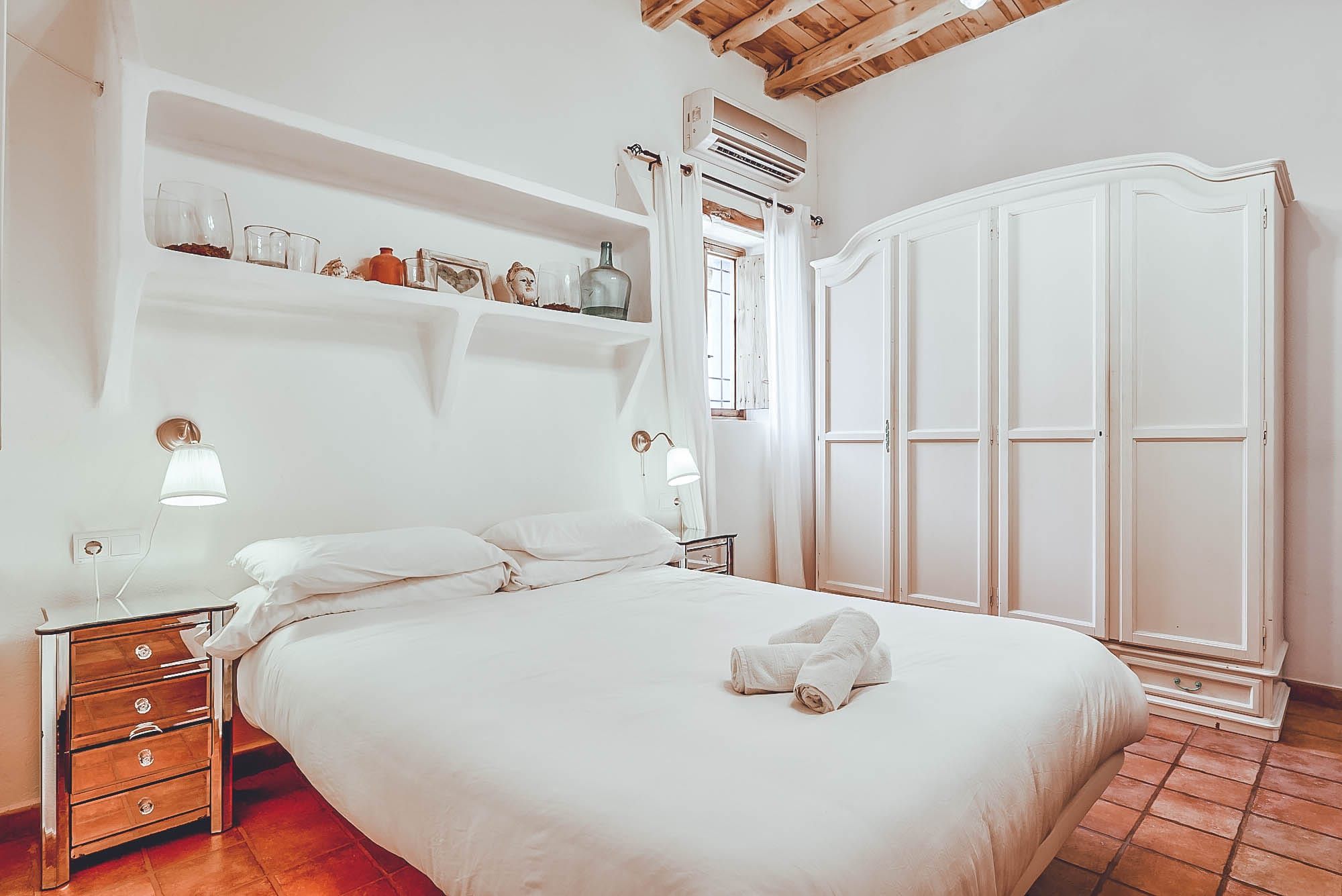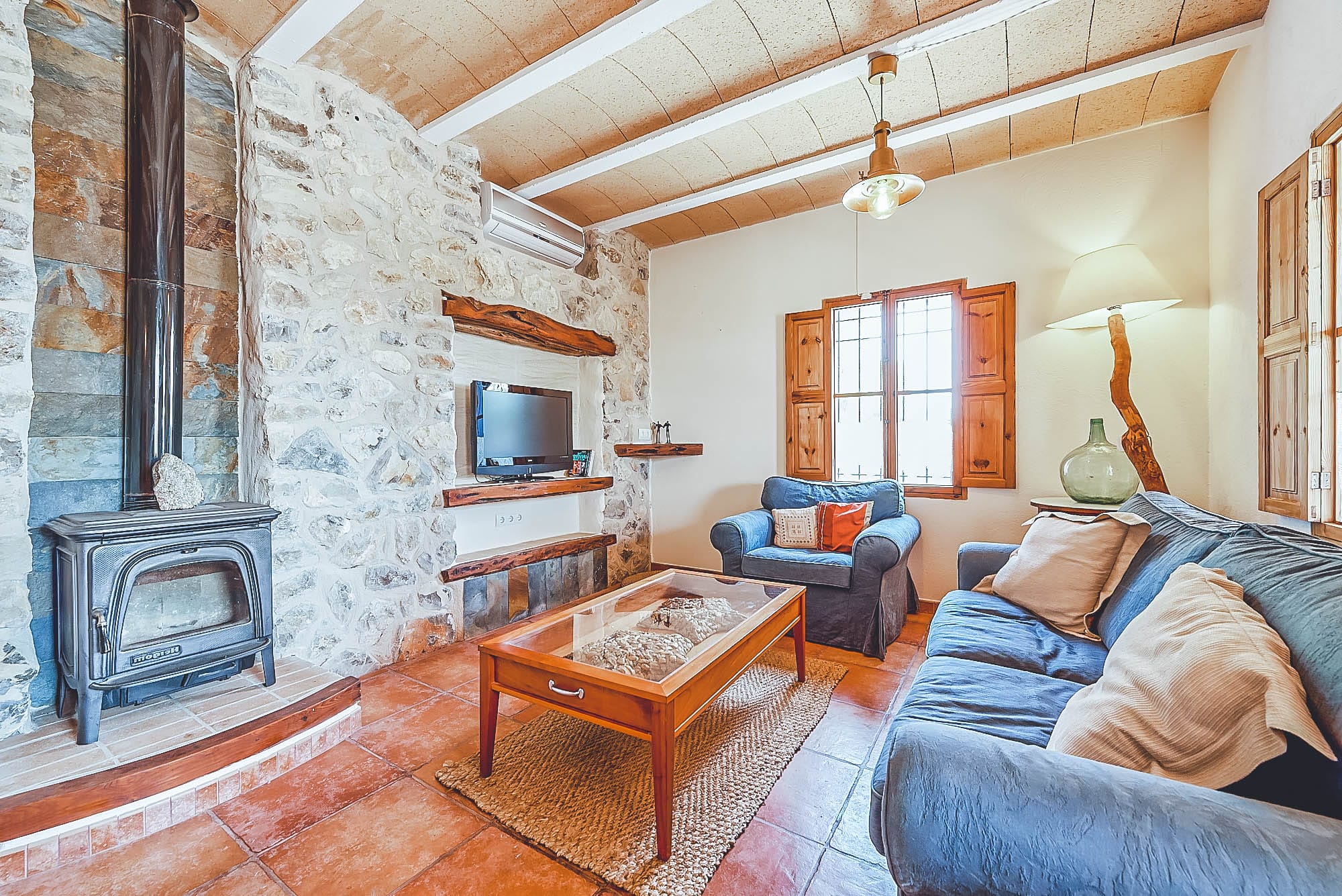 This newly renovated finca has been lovingly restored to retain its natural, authentic style, whilst offering guests all the modern day comforts you could require, and has its own particular elegant bohemian style. The villa offers spacious living spaces throughout for all to enjoy, all decorated with exceptional taste and attention to detail, with eclectic touches throughout. The main house consists of two large double bedrooms plus a large twin bedroom, all of which are complete with en-suite bathrooms and a separate self-contained apartment with a bathroom & kitchenette. This house has also been adapted with access to suit those with disabilities or wheelchair users.