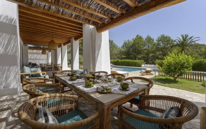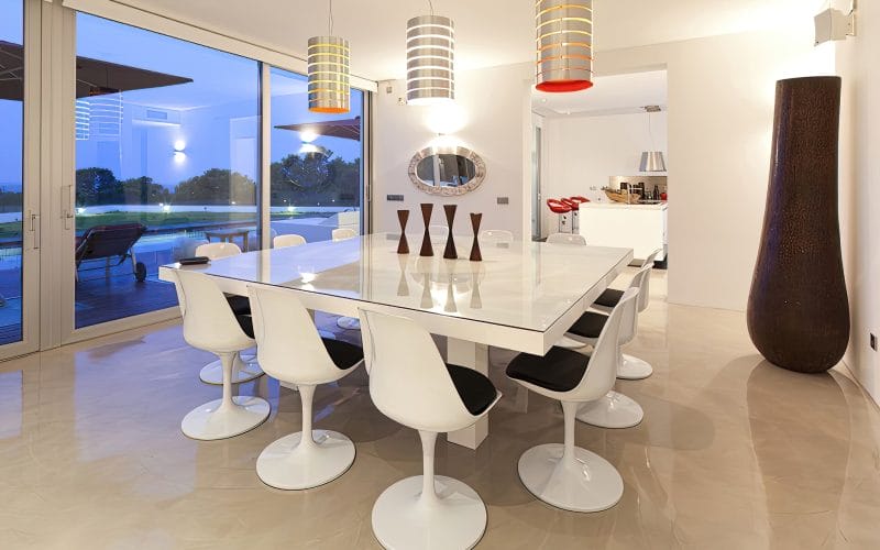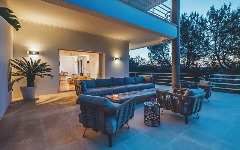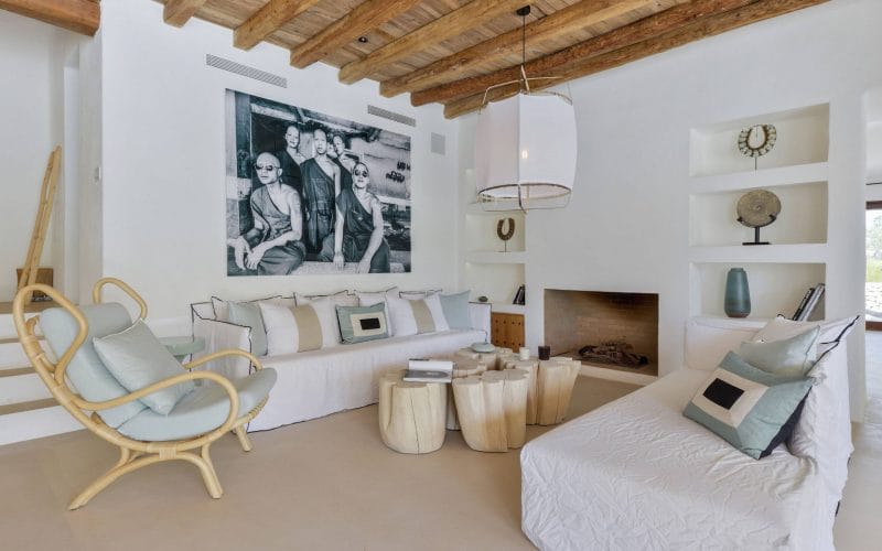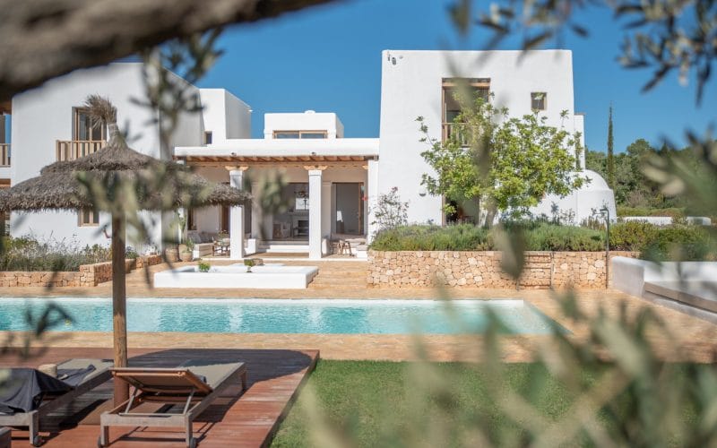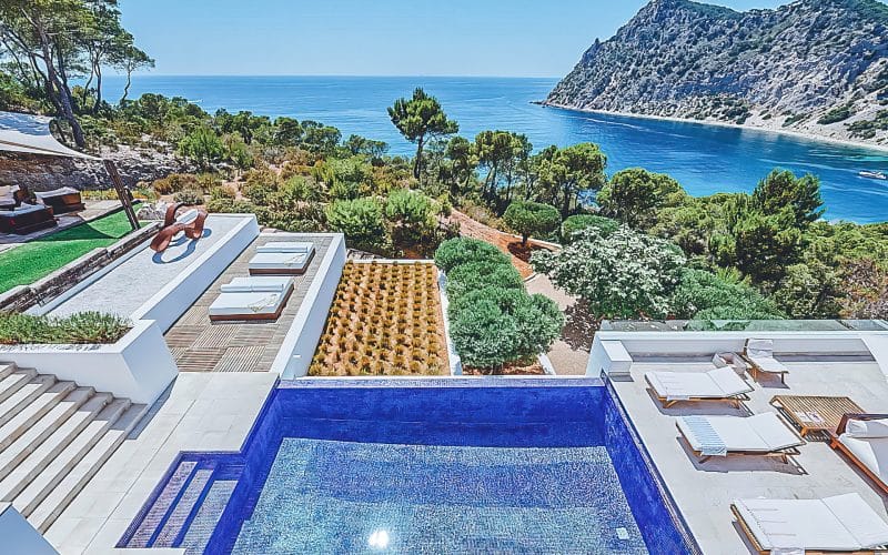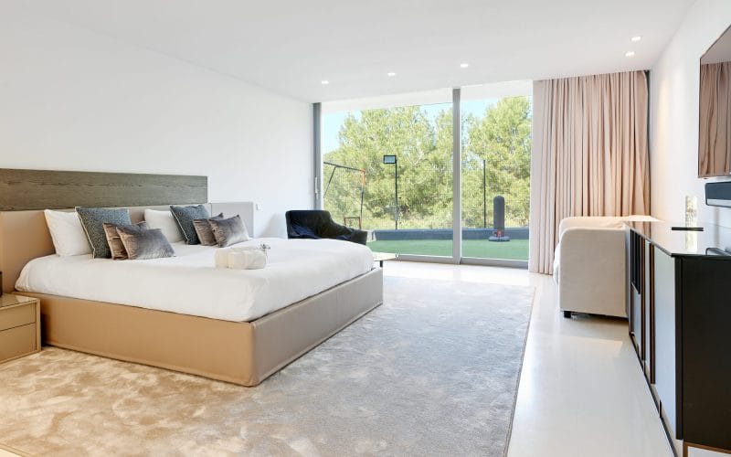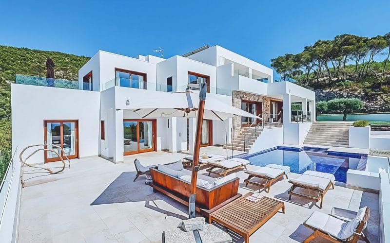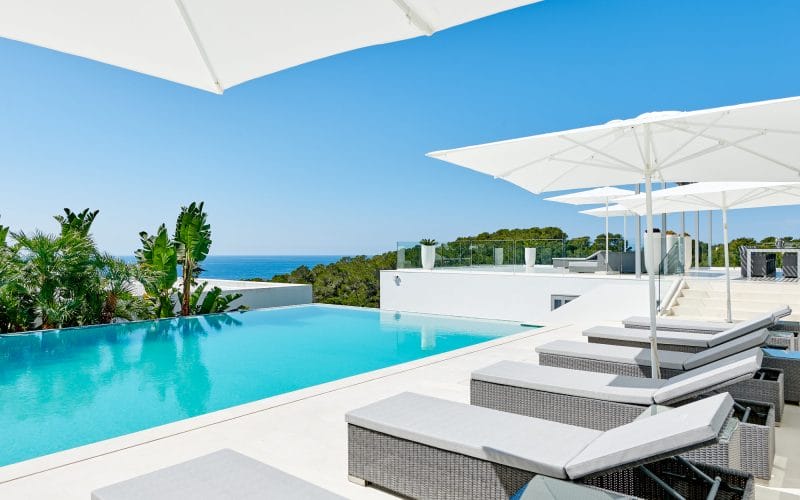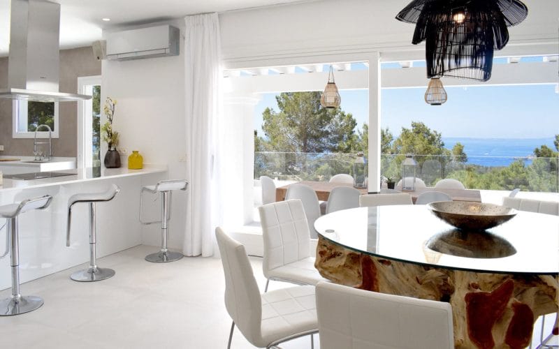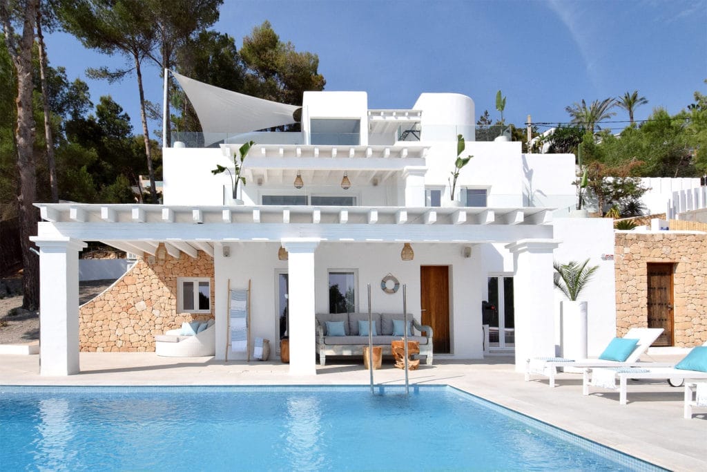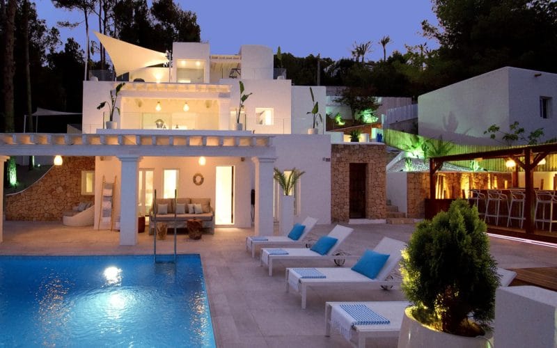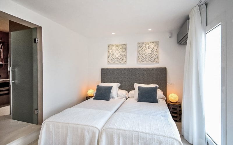 Splendid 340 m2 villa situated on a 1,700 m2 lot that is exquisitely appointed and appointed. Five of the accommodations feature private restrooms. In close proximity to Es Cubells, Es Torrent, and Cala Jondal beaches. Stunning in design, this minimalist