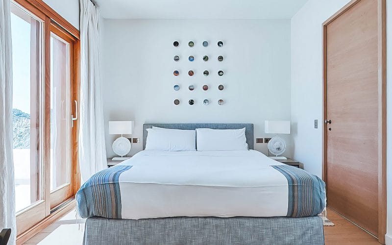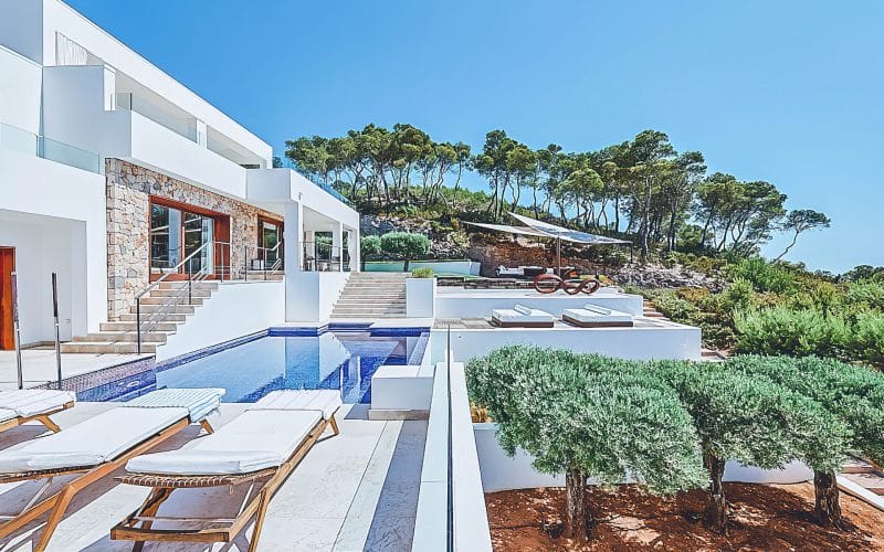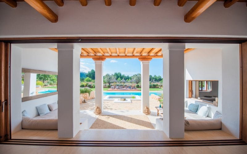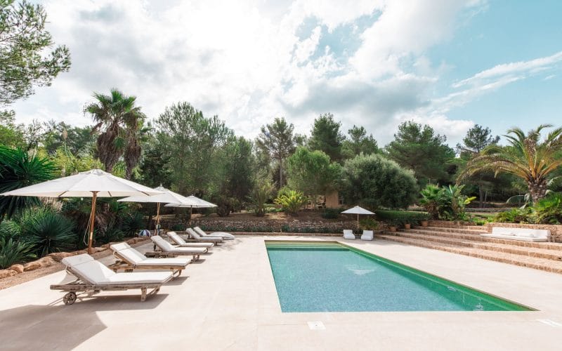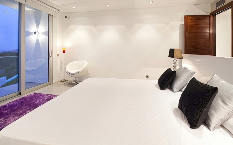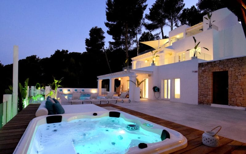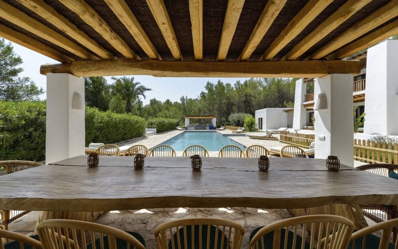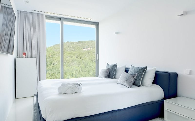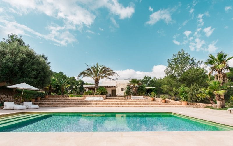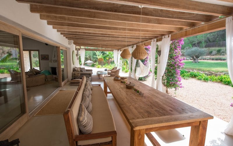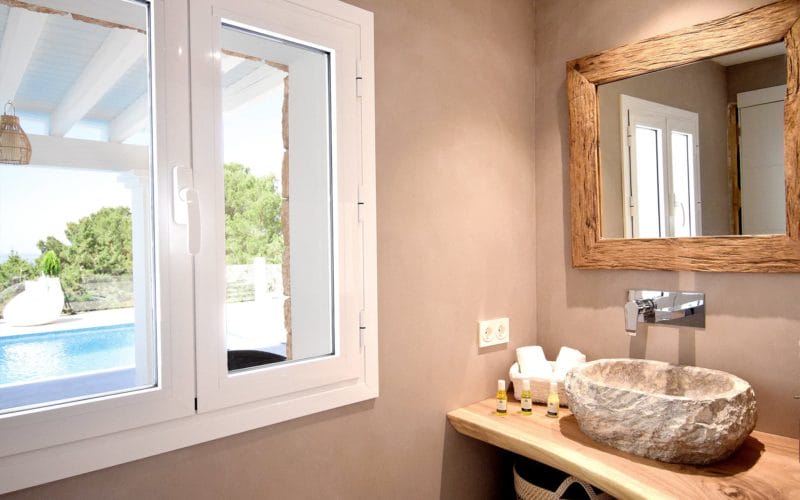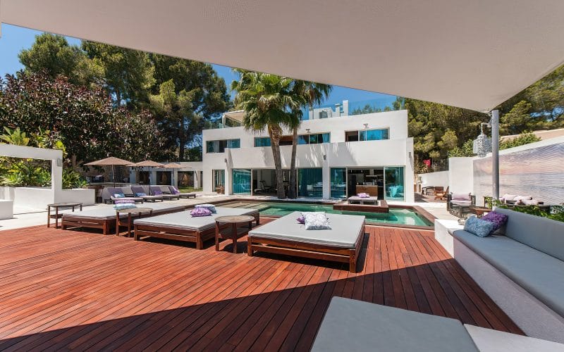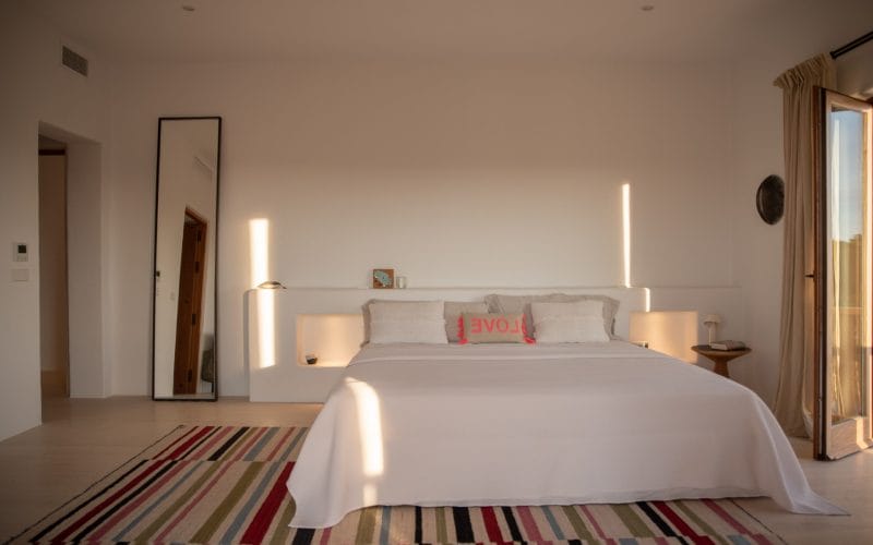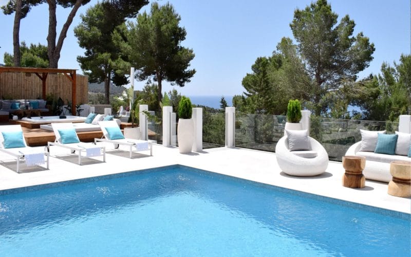 Splendid 340 m2 villa situated on a 1,700 m2 lot that is exquisitely appointed and appointed. Five of the accommodations feature private restrooms. In close proximity to Es Cubells, Es Torrent, and Cala Jondal beaches. Stunning in design, this minimalist