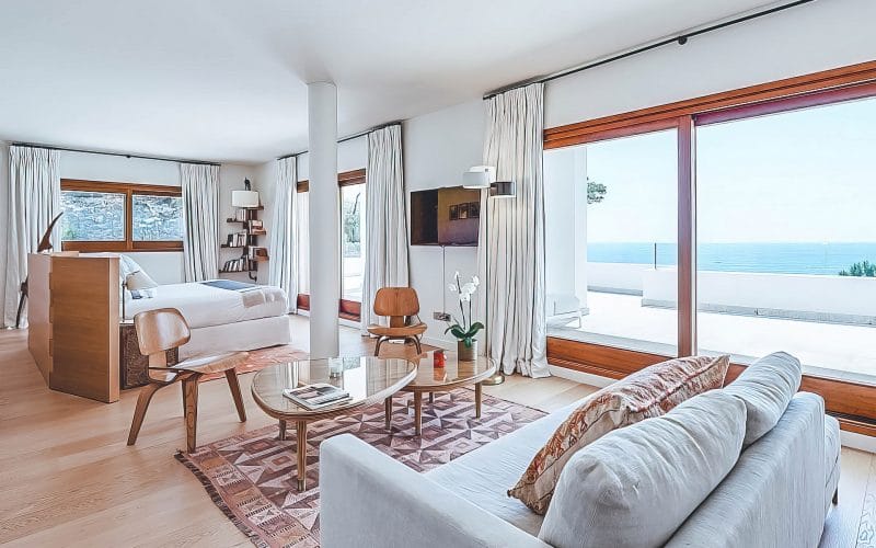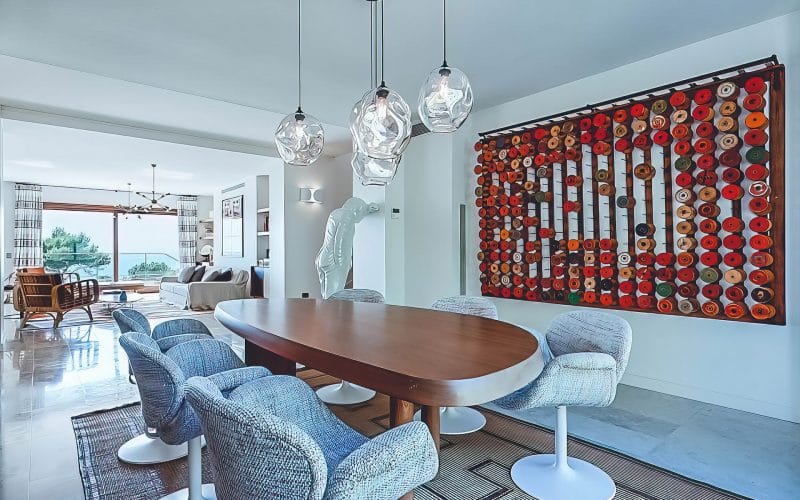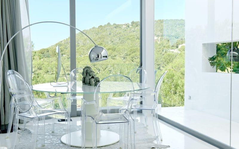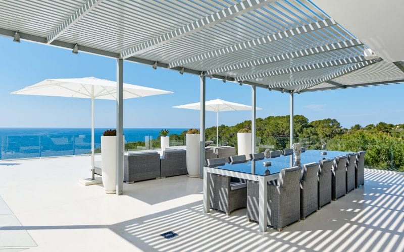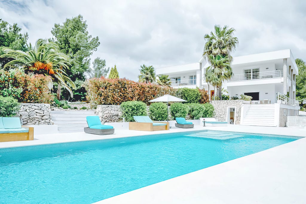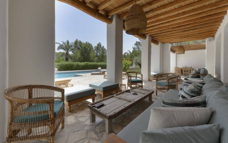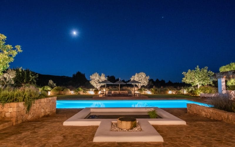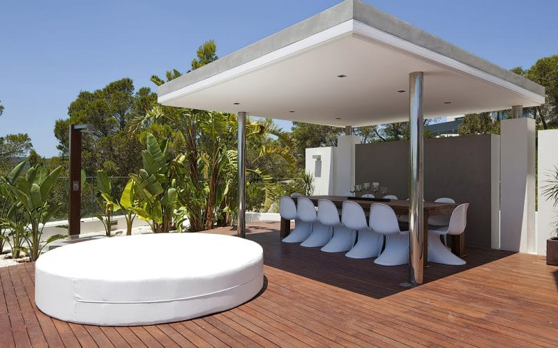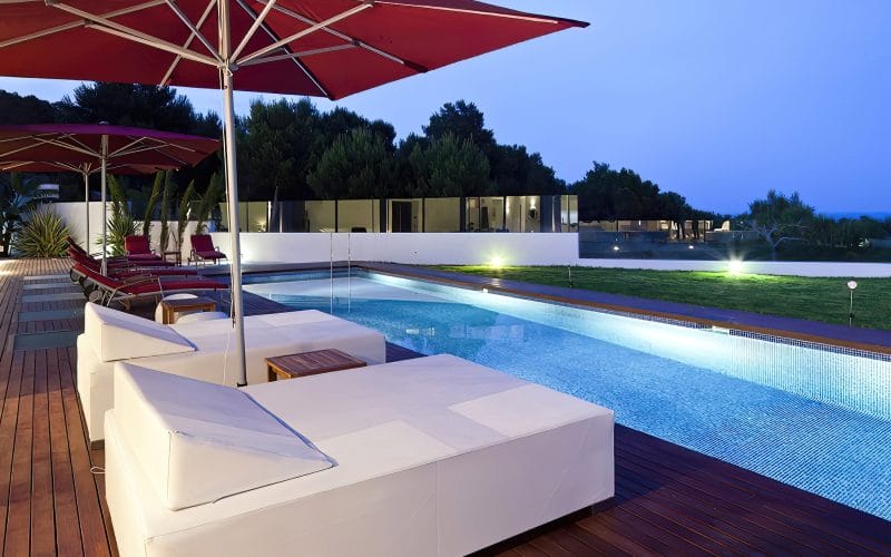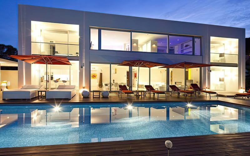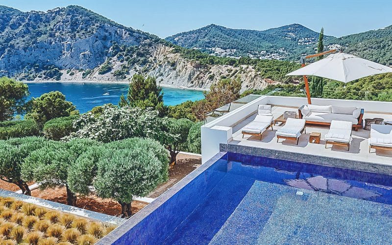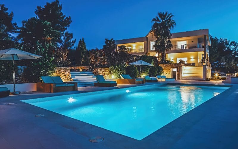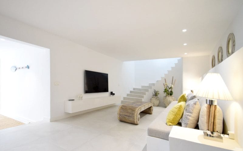 Splendid 340 m2 villa situated on a 1,700 m2 lot that is exquisitely appointed and appointed. Five of the accommodations feature private restrooms. In close proximity to Es Cubells, Es Torrent, and Cala Jondal beaches. Stunning in design, this minimalist