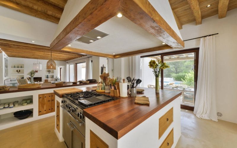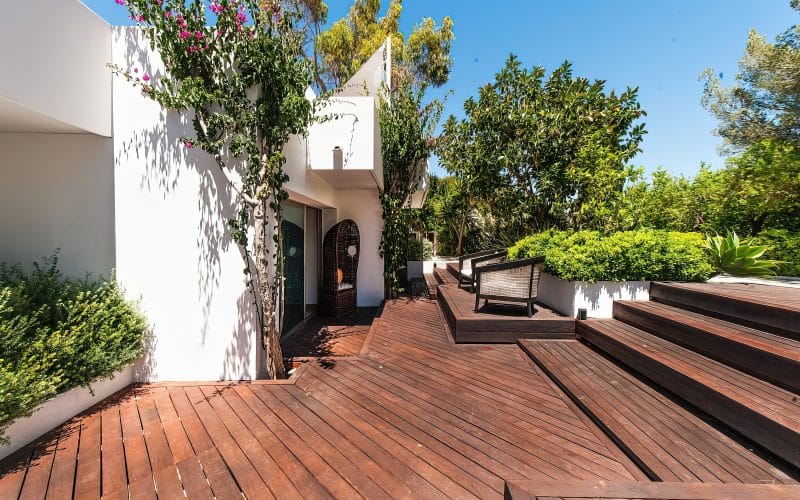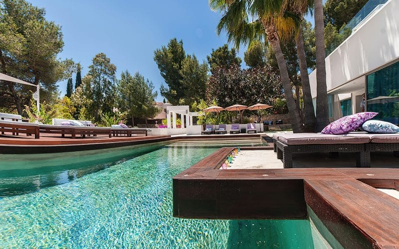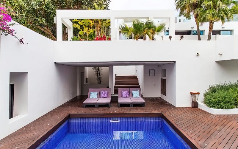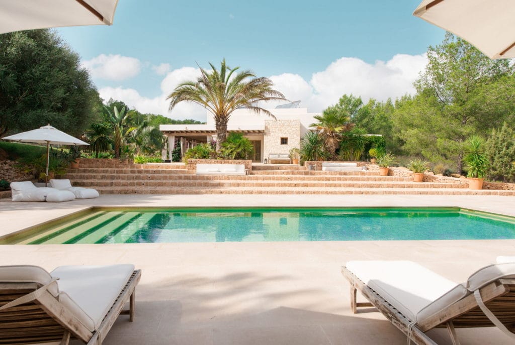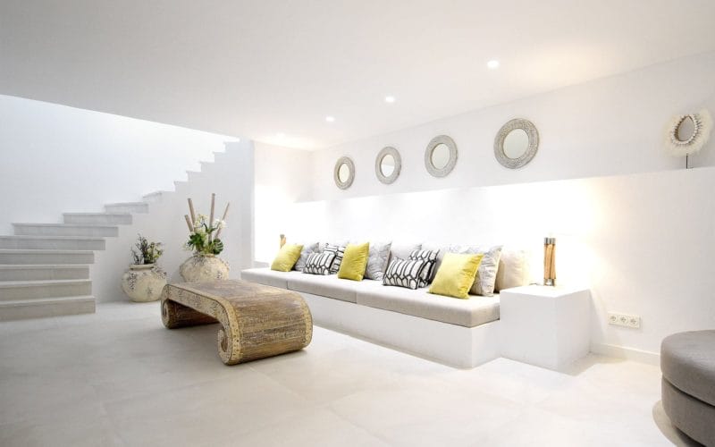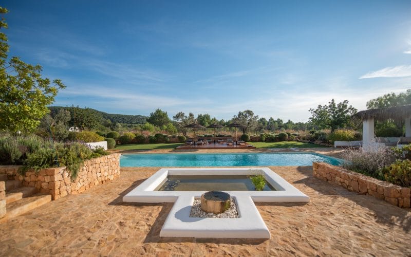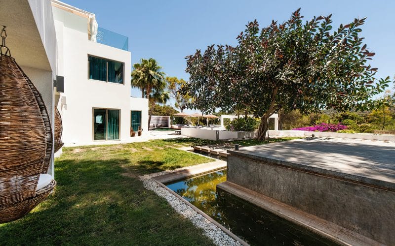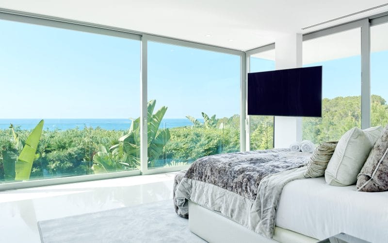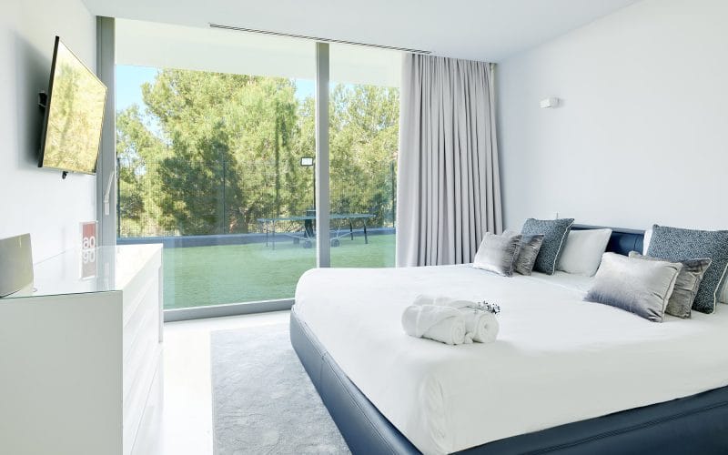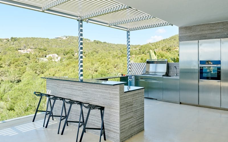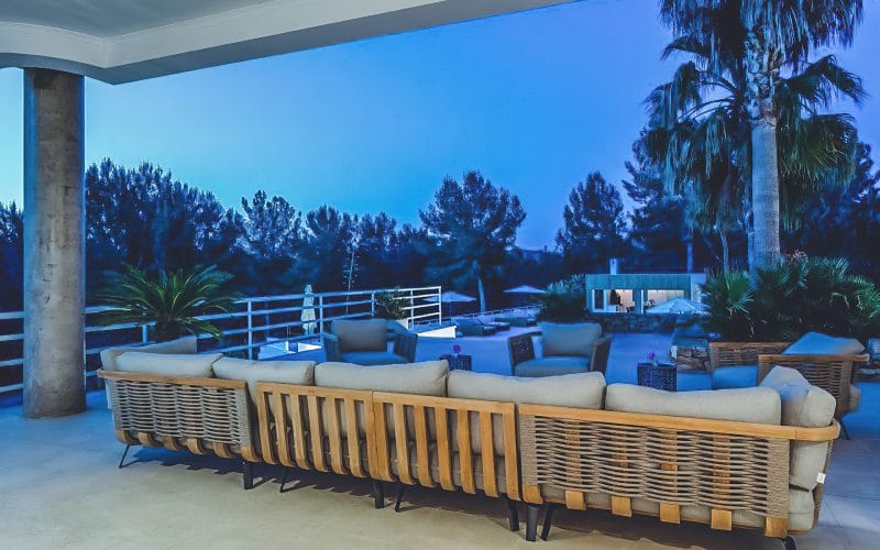 Splendid 340 m2 villa situated on a 1,700 m2 lot that is exquisitely appointed and appointed. Five of the accommodations feature private restrooms. In close proximity to Es Cubells, Es Torrent, and Cala Jondal beaches. Stunning in design, this minimalist