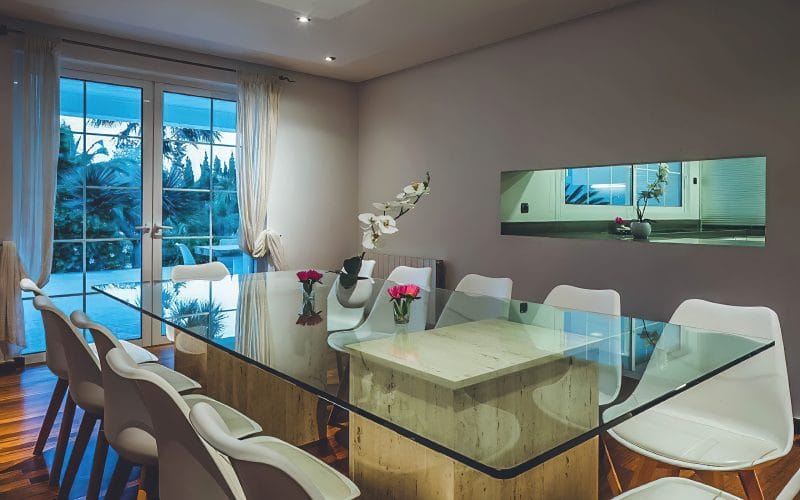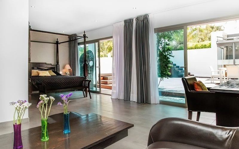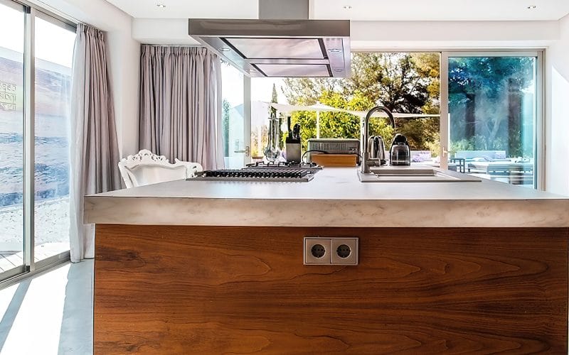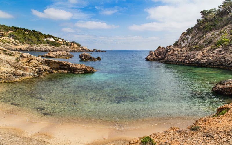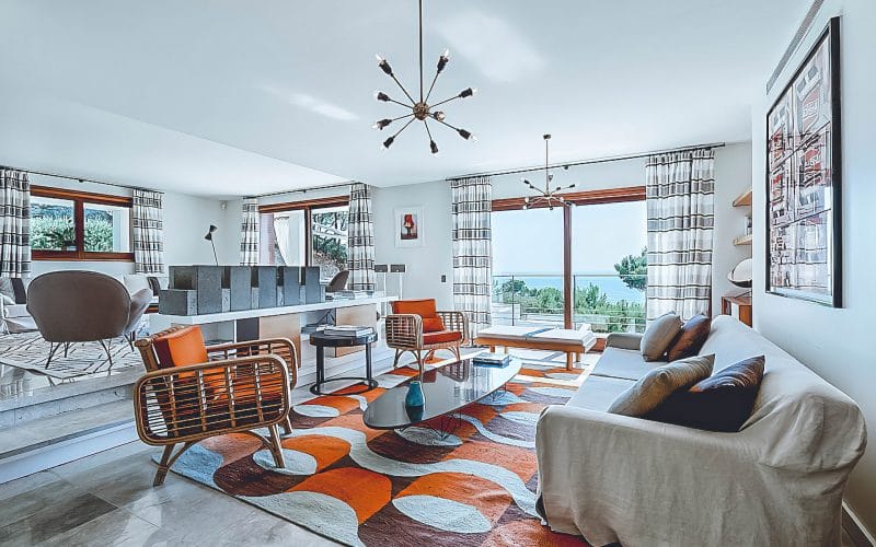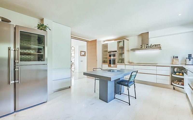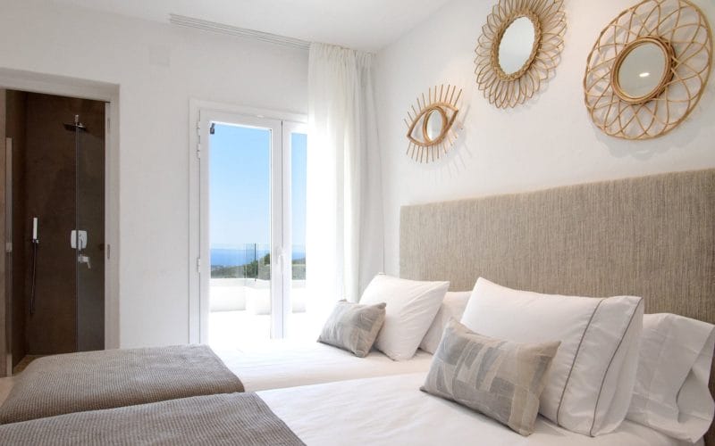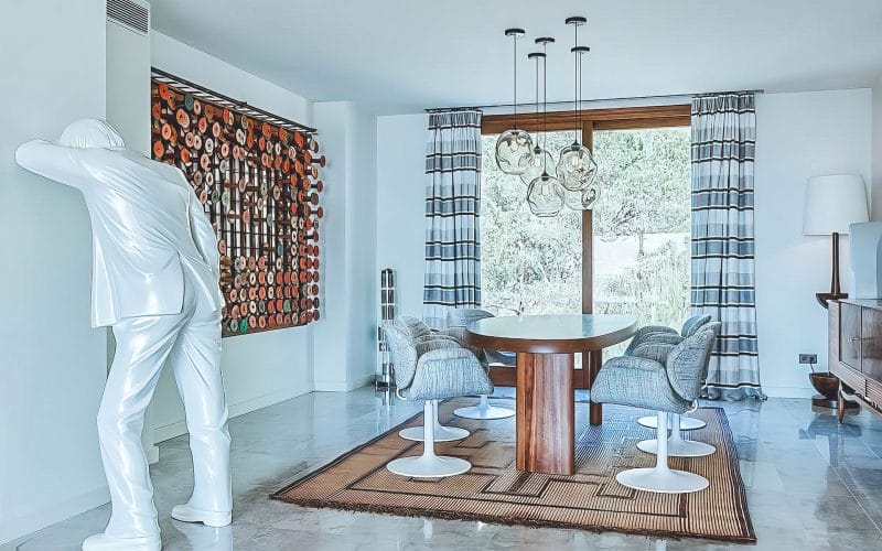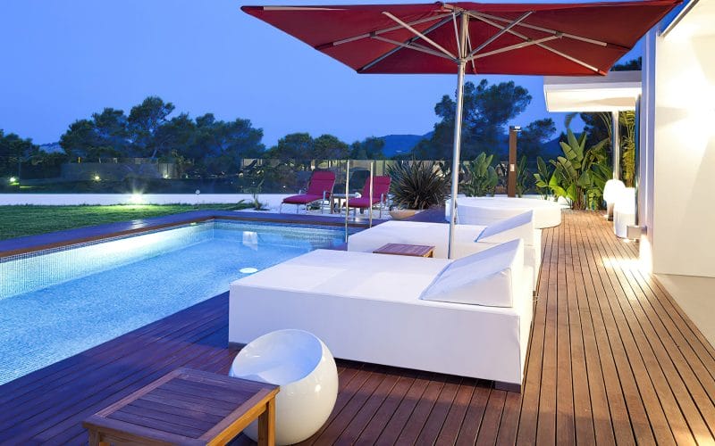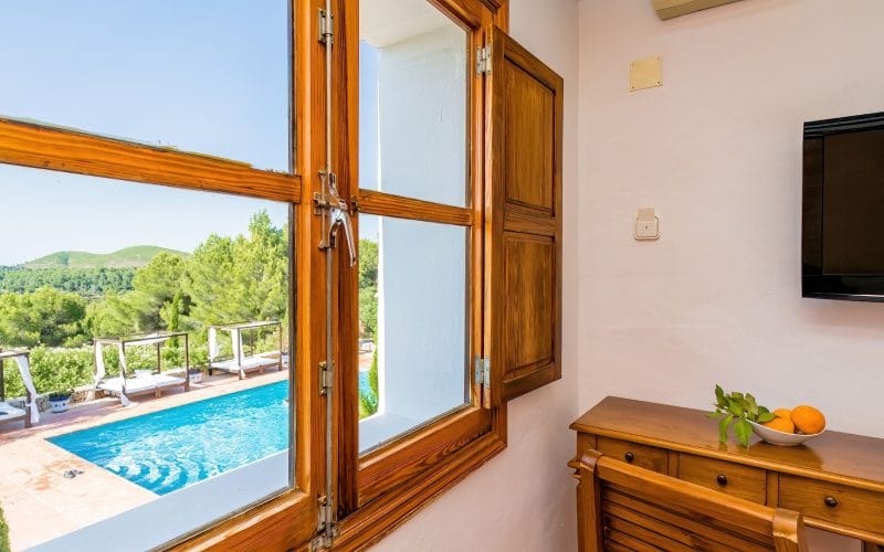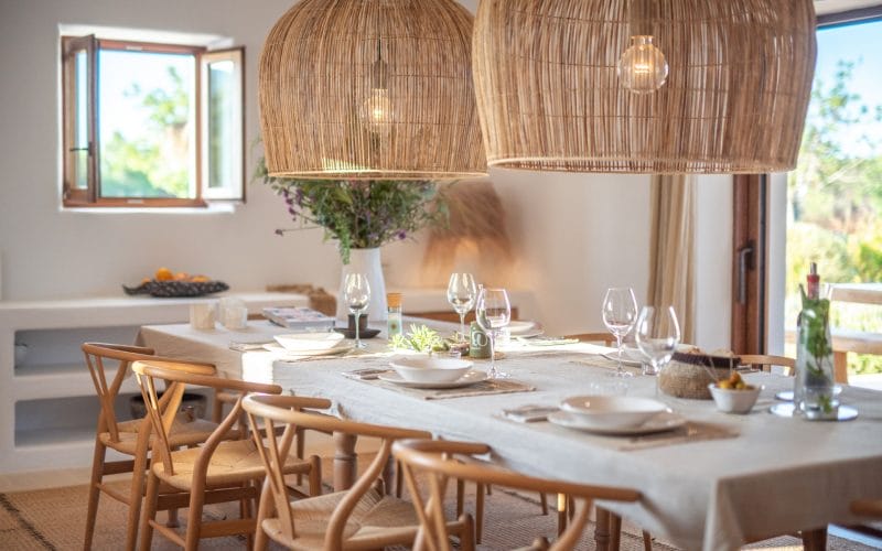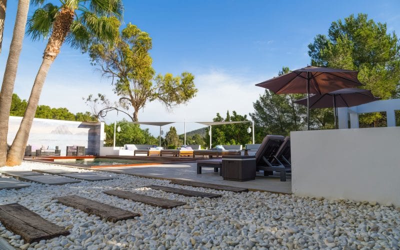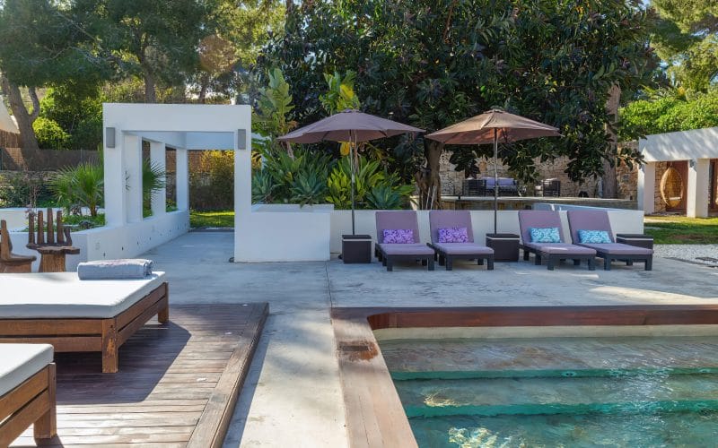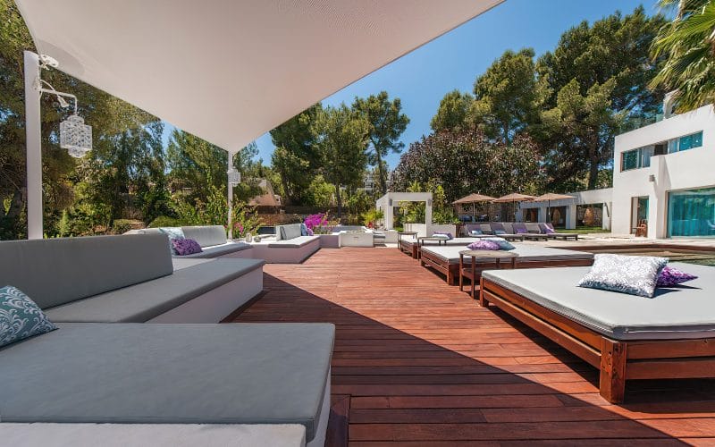 Splendid 340 m2 villa situated on a 1,700 m2 lot that is exquisitely appointed and appointed. Five of the accommodations feature private restrooms. In close proximity to Es Cubells, Es Torrent, and Cala Jondal beaches. Stunning in design, this minimalist