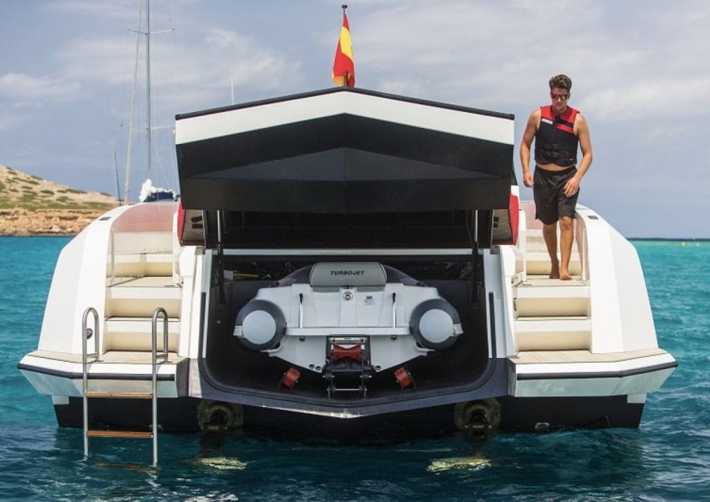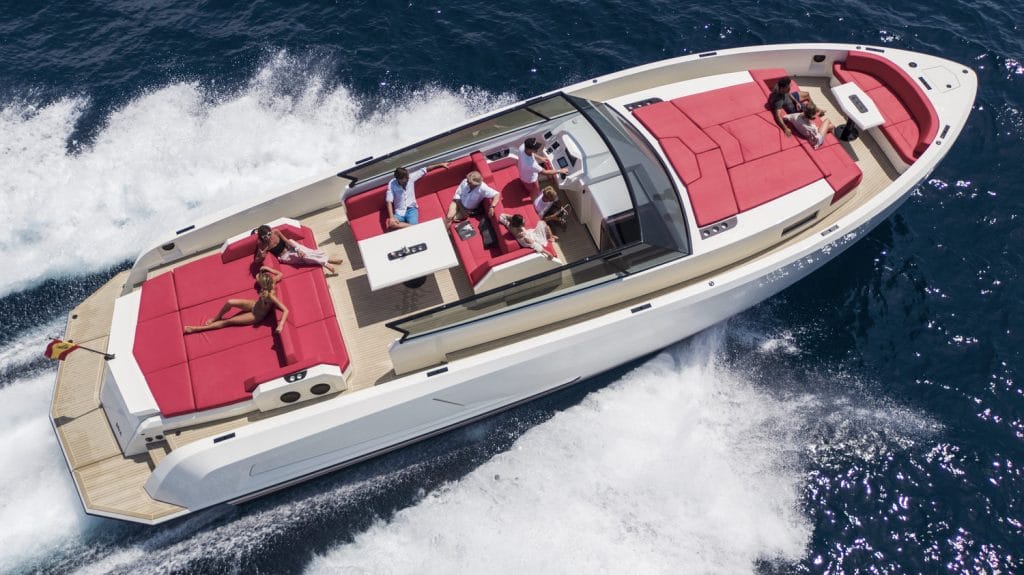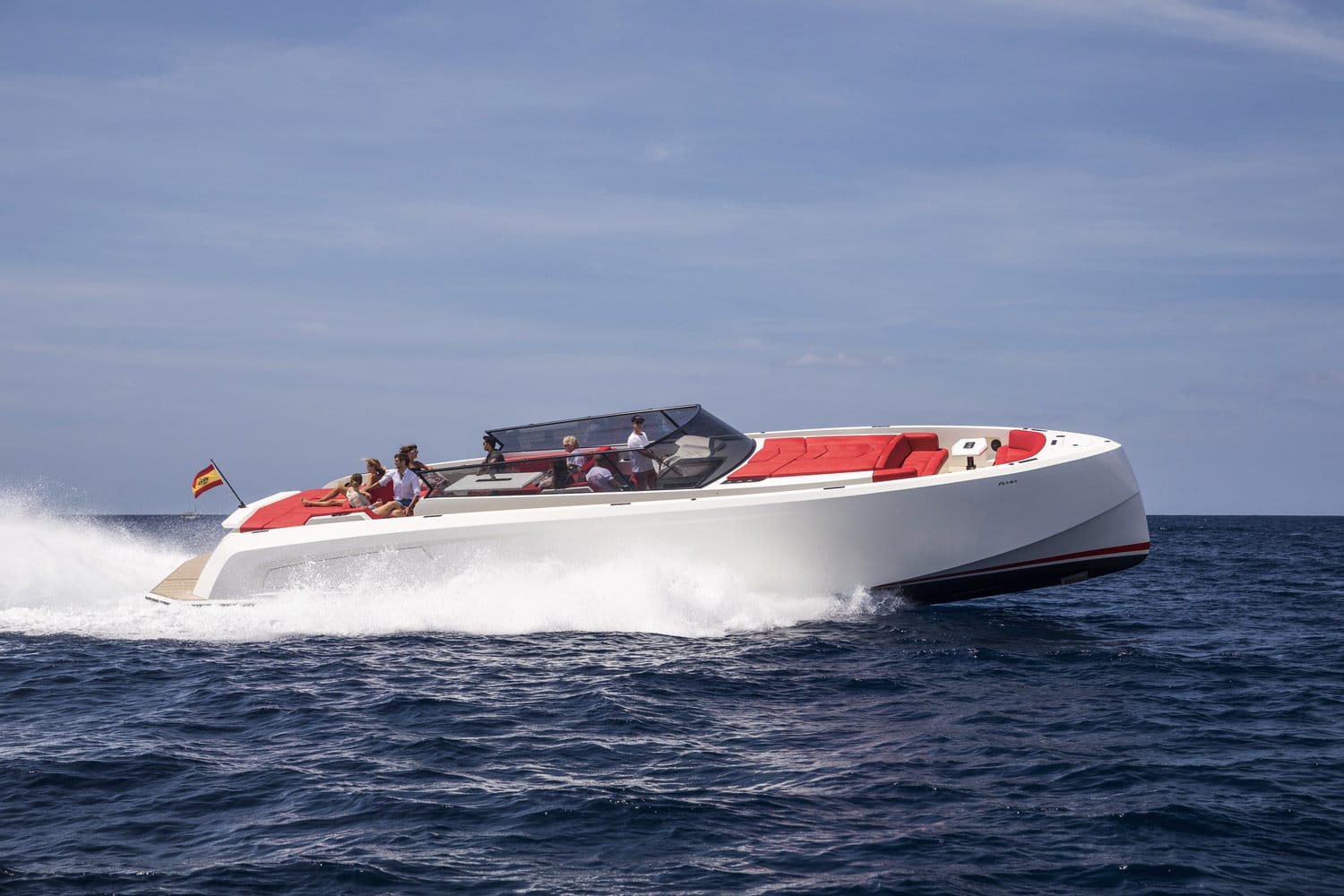 This exciting motor yacht is designed for the most demanding clients. The VQ54 is a testament to the flexibility of Vanquish Yachts, it is a new icon of style and spirit of motorboat. It offers a lot of outdoor space, and a bimini awning capable of providing enough shade. It is an ideal boat for day rentals in Ibiza and Formentera, unsurpassed cruise comfort and a very elegant, current and futuristic design.